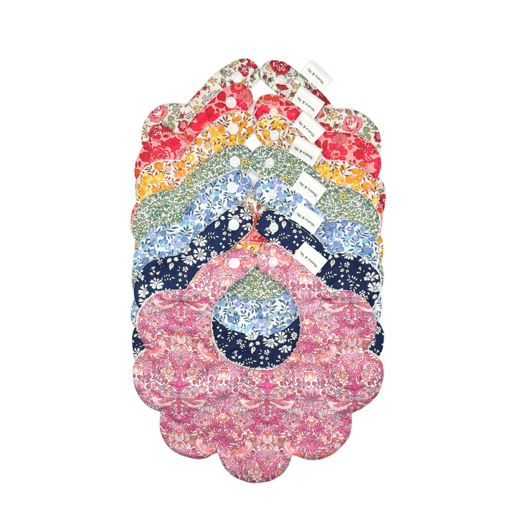 Set of 7 cotton tana Lawn Liberty London scalloped bibs in Rainbow colours.