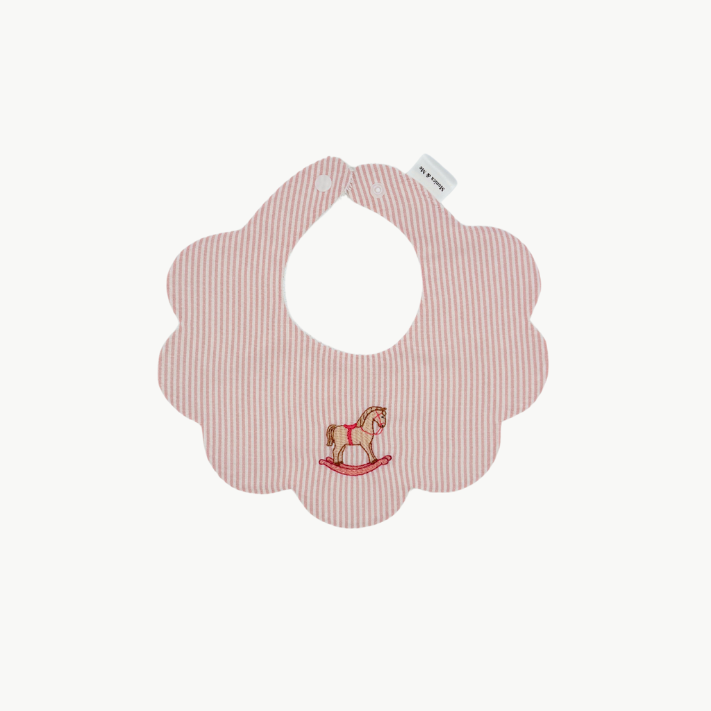 1x Pink Striped bib with an embroidered Rocking Horse