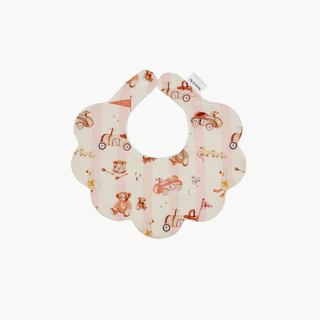 1x Gingham bib with vintage toys